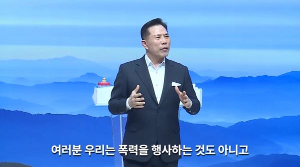¡ã¼ÕÇöº¸ ¸ñ»çÀÇ 1¿ù 5ÀÏ ¼³±³ ¸ð½À. ¡°Æø·ÂÀ» Çà»çÇÏÀÚ´Â °ÍÀÌ ¾Æ´Ï´Ù¡±°í Á÷Á¢ ¾ð±ÞÇϰí ÀÖ´Ù. ¨ÏÀ¯Æ©ºê